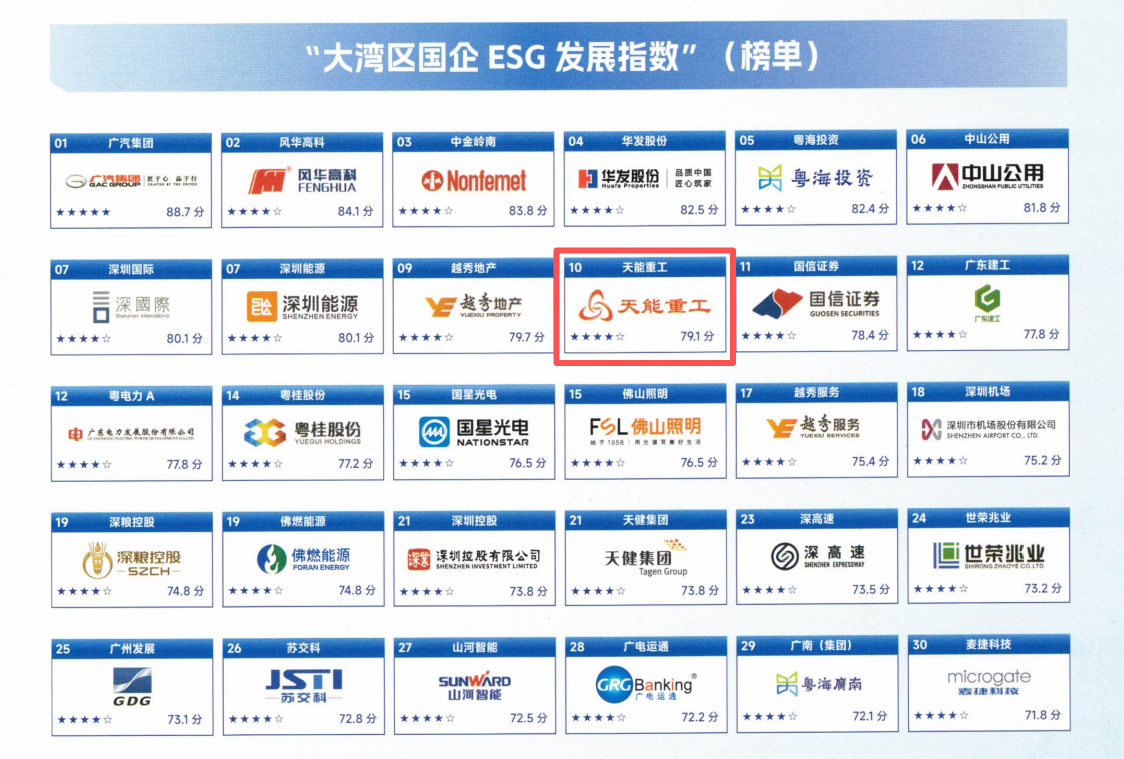 天能重工入选“大湾区国企ESG发展指数”榜单